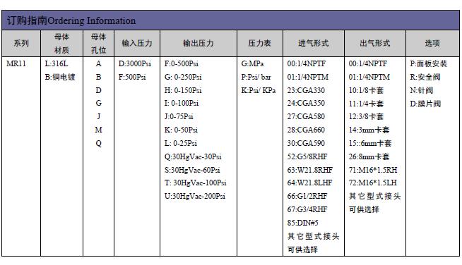 MR11 系列不锈钢减压器创新运用单级式膜片减压结构与不锈钢膜片压力传输技术,以卓越的工程设计实现输出压力的稳定调控与灵敏响应。该产品专为小流量气体系统量身打造,凭借不锈钢材质的高强度与耐腐蚀性,完美适配高纯气体及有毒气体等特殊介质,在保障气体输送高精度控制的同时,通过严密的安全防护设计,有效规避泄漏风险,为半导体、科研实验等对气体纯净度与安全性要求严苛的场景,提供可靠的减压解决方案。